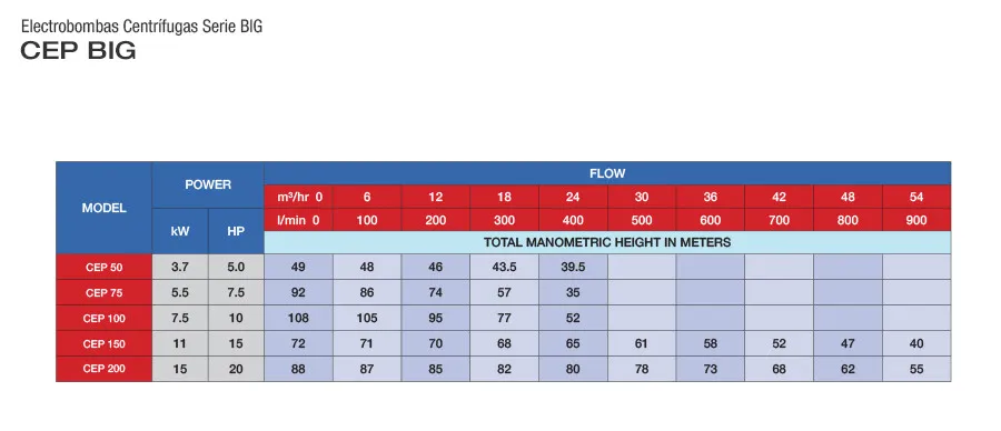 Las CEP BIG pueden ser usadas para bombear agua limpia u otros líquidos similares al agua en propiedades físicas y químicas.