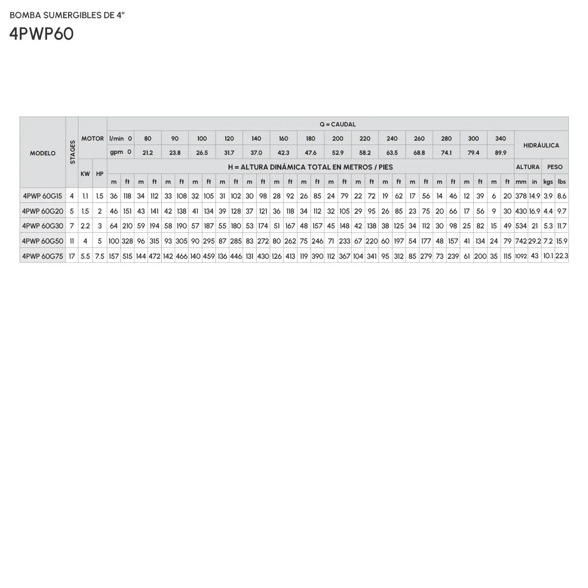 Bomba Sumergible 4PWP80G 30C36P3 Se usan en el mercado residencial, industrial y agrícola. Perfectas para aplicaciones en las cuales se necesita incrementar la presión, sistemas de riego y trasvasado de agua.