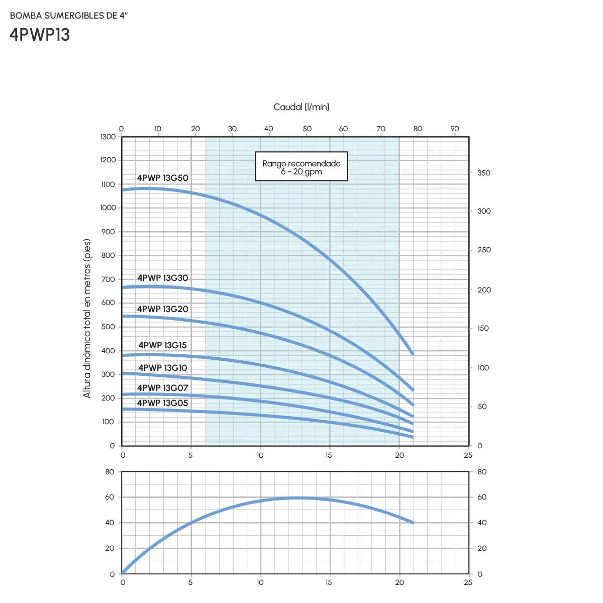 | 4PWP13G 50 | 5 | 35 | 1.1/4″ | Nema 4″ | Flotante | 327 | 21 |