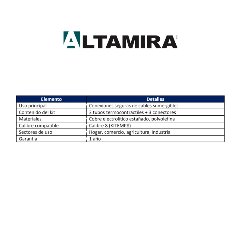 Este kit está diseñado específicamente para unir y aislar correctamente cables sumergibles, garantizando la continuidad eléctrica y protección contra la entrada de humedad.
