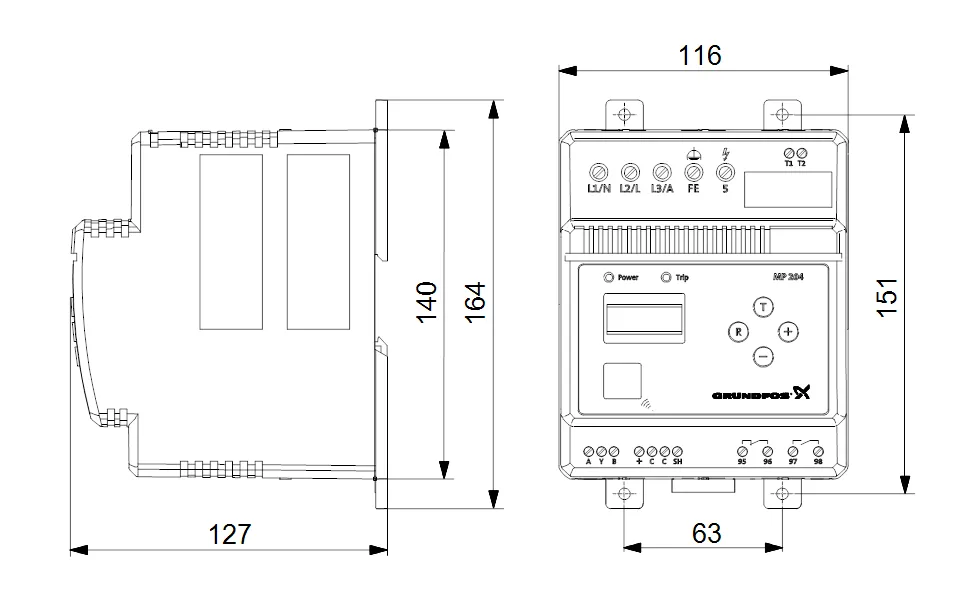 La unidad de protección de motor MP 204 es una unidad electrónica de control diseñada para controlar y proteger motores, bombas, equipos, cables y conexiones de cable.